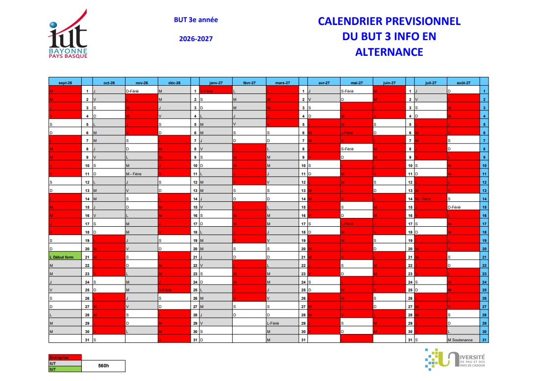 Troisième année de BUT en alternance (2026 / 2027) prévisionnel